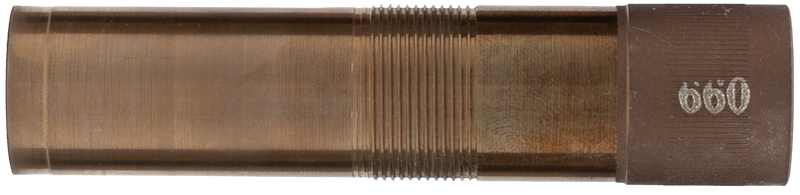 This is a turkey choke tube designed for 12 gauge shotguns with Optima Plus threading. It features a .660 inch constriction diameter optimized for turkey hunting applications. Installation is via direct screw-in design to compatible shotgun barrels.