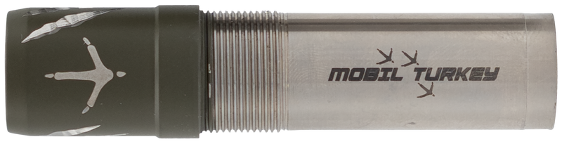 This is a turkey-specific choke tube designed for 20 gauge shotguns, manufactured from stainless steel for durability and corrosion resistance. The Raptor model is compatible with Mossberg Mobile choke systems and measures 6.9" in length. Installation is via the standard mobile choke tube method for quick and tool-free removal.