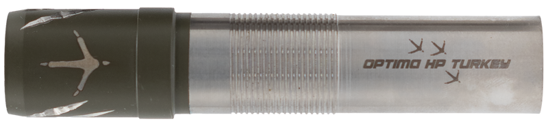 This is a turkey choke tube designed for 12 gauge shotguns with Optima HP compatibility. Constructed from stainless steel for durability and corrosion resistance, it measures 6.9" in length. The Raptor model provides optimized shot patterns for turkey hunting applications.
