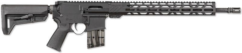 The Rock River Arms LAR-15M is a semi-automatic rimfire rifle chambered in 17 HMR with an 18" black nitride threaded steel barrel and 1:9" twist rate. It features an optic-ready design, 15" M-LOK free-float handguard, Magpul SL-K synthetic buttstock, and two-stage match trigger. The rifle weighs 6.75 lbs with an overall length of 33.5" and includes an A2 flash hider.
