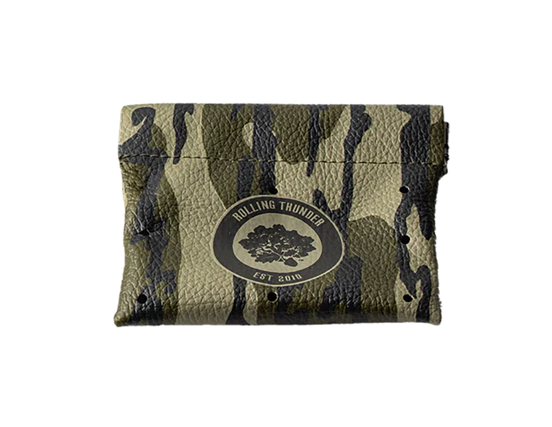 This mouth call pouch from Rolling Thunder Game Call is designed to safely store and organize game calls while hunting. The compact Bottomland camo pouch measures 7.0" L x 4.5" W x 0.8" H, making it portable and easy to carry in a pack or vest. The pouch protects calls from damage and weather while keeping them readily accessible in the field.