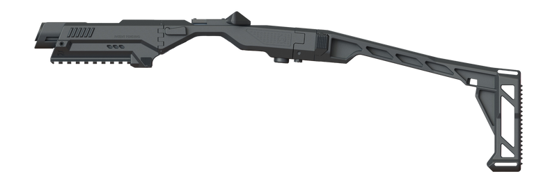 The Nano Roni is a stabilizing brace designed for Glock 17 and 19 handguns, converting them into a more controllable platform. This polymer-based brace attaches to compatible Glock frames and features a rear stabilizing design for improved accuracy and control. Installation is tool-free and compatible with standard Glock 17/19 frames.