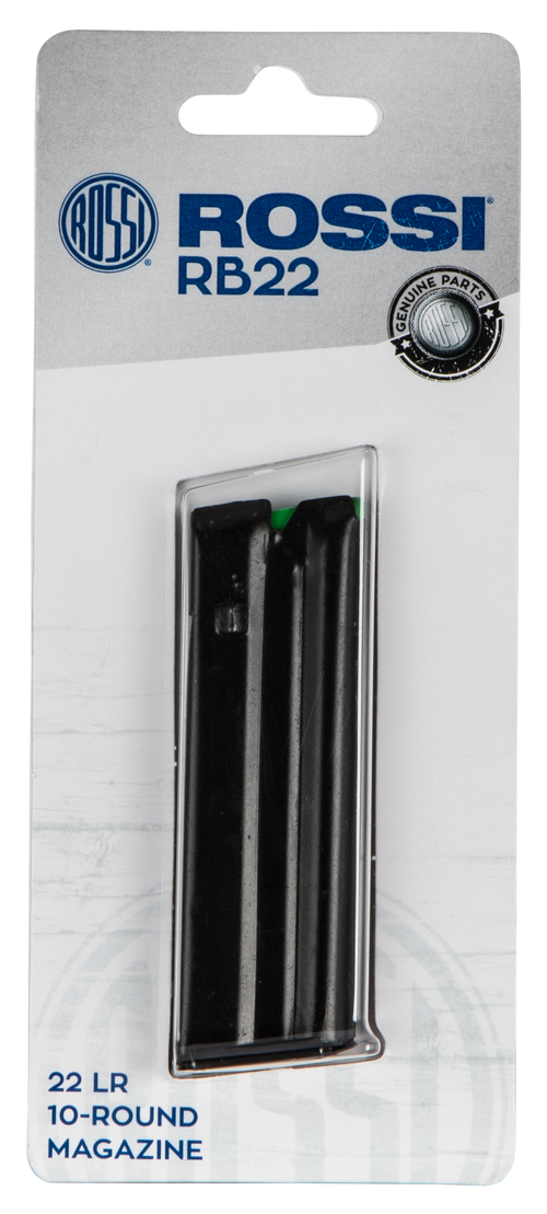 This is an OEM replacement magazine for Rossi RB22M and RB17 bolt-action rifles chambered in 17 HMR and 22 WMR. The detachable steel magazine holds 5 rounds and features a black matte finish with solid construction matching factory specifications.