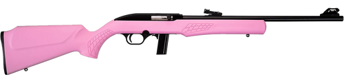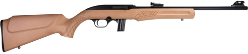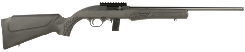The Rossi RS22 is a semi-automatic rimfire rifle chambered in .22 LR with an 18" barrel and 10+1 capacity. It features adjustable fiber optic front and rear sights, a free-floating barrel with 3/8" dovetail for scope mounts, and a fixed hardwood stock. This lightweight rifle weighs 4.1 lbs and measures 36.25" overall, making it suitable for plinking, small game hunting, and varmint control.