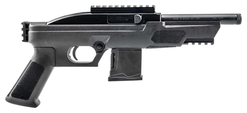 The Rossi RS22P is a semi-automatic pistol chambered in .22 LR with a 6-inch threaded barrel and 10+1 round capacity. It features an aluminum frame with black synthetic grips, rear Picatinny rail, front accessory rail, and aluminum optics rail for customization. Weighing 2.23 lbs with an overall length of 14.06 inches, it's designed for plinking, training, and small-game shooting.