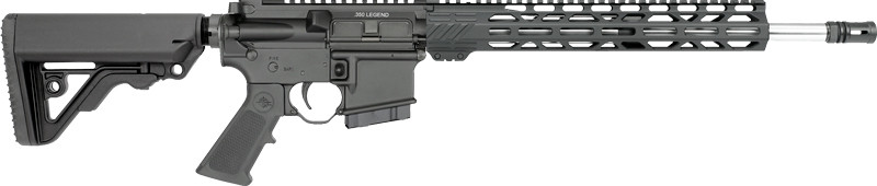 Rock River Arms LAR-15M in 350 Legend with a 16" stainless steel barrel and semi-automatic action. Features a 6-position stock, M-LOK rail system, and flat-top A4 platform for optic mounting.