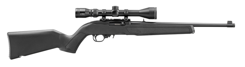 Semi-automatic rimfire rifle chambered in .22 LR with a 16.4" threaded barrel (1/2x28 thread pitch) and satin black finish. Features a lightweight polymer stock with M-LOK slots, BX-Trigger with crisp 2.5-3 lb pull, adjustable rear and gold bead front sights, drilled and tapped receiver, and factory-mounted Viridian EON 3-9x40mm scope. Weighs 4 lbs with 10+1 round capacity.