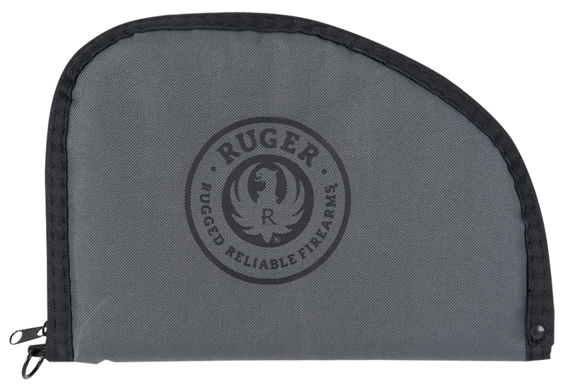 This Ruger Rugged Pistol Case is designed to safely store and transport a single pistol with secure protection. Measuring 12.5" long with padded polyester construction, it features a lockable zipper and hardware for secure closure. The black and gray color scheme provides a professional appearance for range or travel use.