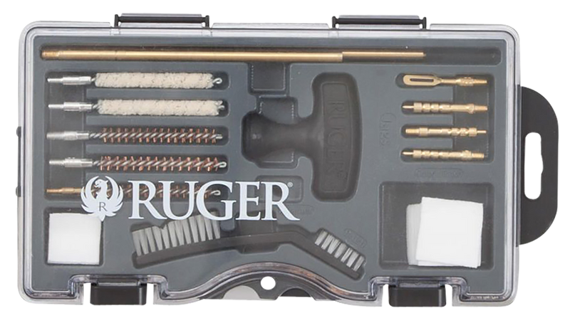 This 12-piece Ruger rimfire cleaning kit is designed for .22 caliber firearms and features bronze bristles with slotted tips for effective bore cleaning. The kit comes in a black plastic molded case for organized storage and portability. Ideal for regular maintenance and care of rimfire rifles and pistols.