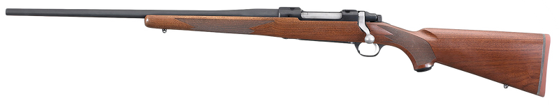 Ruger Hawkeye in 30-06 Springfield with a 22" satin blued alloy steel barrel and bolt-action. Features an integral scope mount, American walnut fixed stock, and 4+1 capacity. Left-hand configuration; weighs 7.5 lbs with an overall length of 42.75".