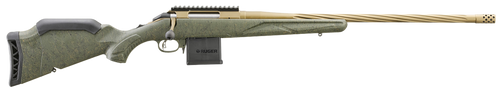 The Ruger American Rifle Generation II is a bolt-action rifle chambered in .204 Ruger with a 22" spiral-fluted threaded barrel featuring Burnt Bronze Cerakote finish and a steel receiver with Picatinny rail. It includes a three-position tang safety, stainless steel bolt with threaded handle, and a GoWild I-M Camo synthetic stock with adjustable length of pull. Accepts 10-round detachable rotary magazines and weighs 6.50 lbs.