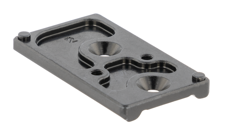 This optic adapter plate enables the use of Docter, Meopta, EOTech, Insight, and Noblex red dot sights on the Ruger-57 pistol, and also fits the TruGlo Tru-Tec Micro TG8100B. The plate is precision CNC machined from 6061-T6 aircraft aluminum with a matte black hardcoat finish for durability. Installation uses two #6-32 screws (provided) secured with a Torx T-15 wrench at 30-50 in-lbs. of torque.