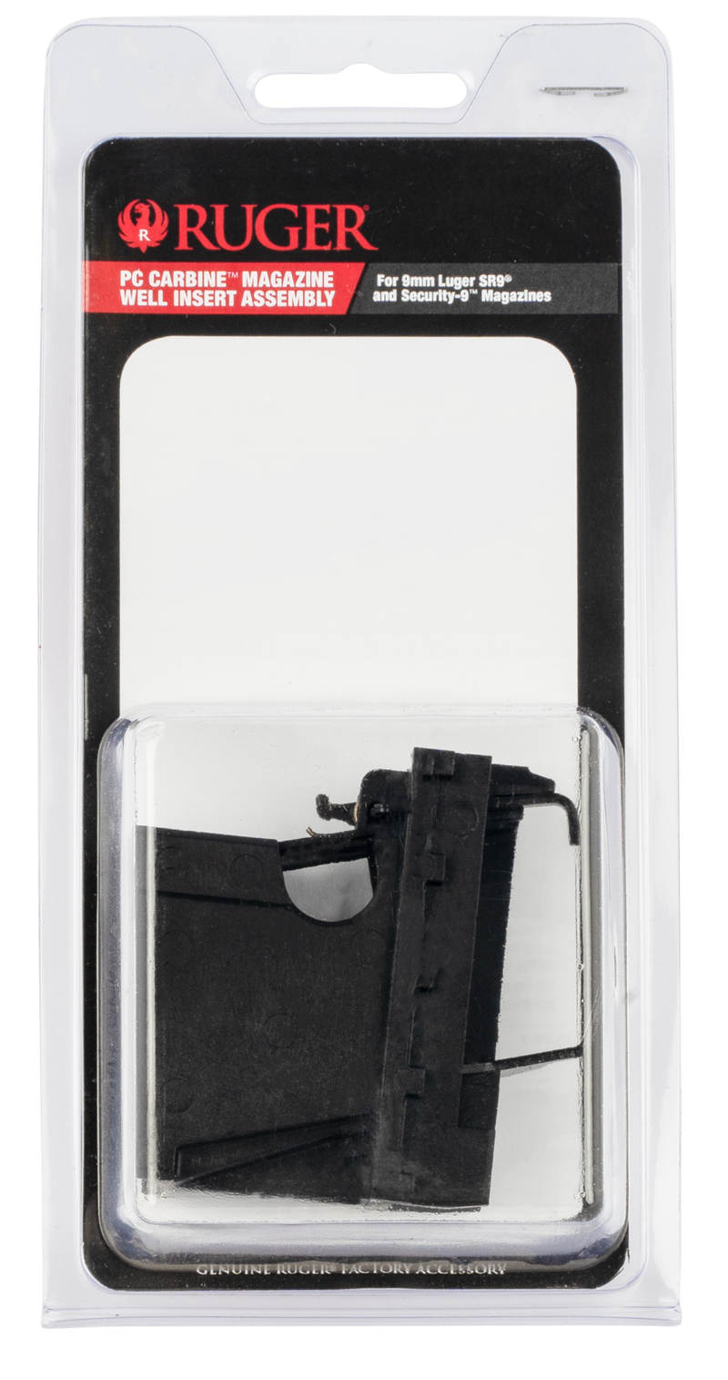This magazine well insert assembly is designed for the Ruger PC Carbine and accepts all Ruger SR9 and Security-9 9mm magazines. Constructed from glass-filled polymer for durability with a flush-fit design, it includes instructions and works with the hex wrench supplied with the PC Carbine.