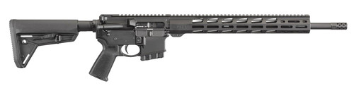 Semi-automatic AR-15 platform rifle chambered in 5.56 NATO with a 16" barrel and 10-round capacity, designed to comply with Colorado magazine restrictions. Features a Type III hard coat anodized finish, adjustable Ruger Rapid Deploy rear sight, adjustable front post sight, six-position collapsible M4-style stock, and Picatinny rails for optic mounting. Weighs 6.7 lbs with an overall length of 32.25-35.50 inches and comes with one magazine.