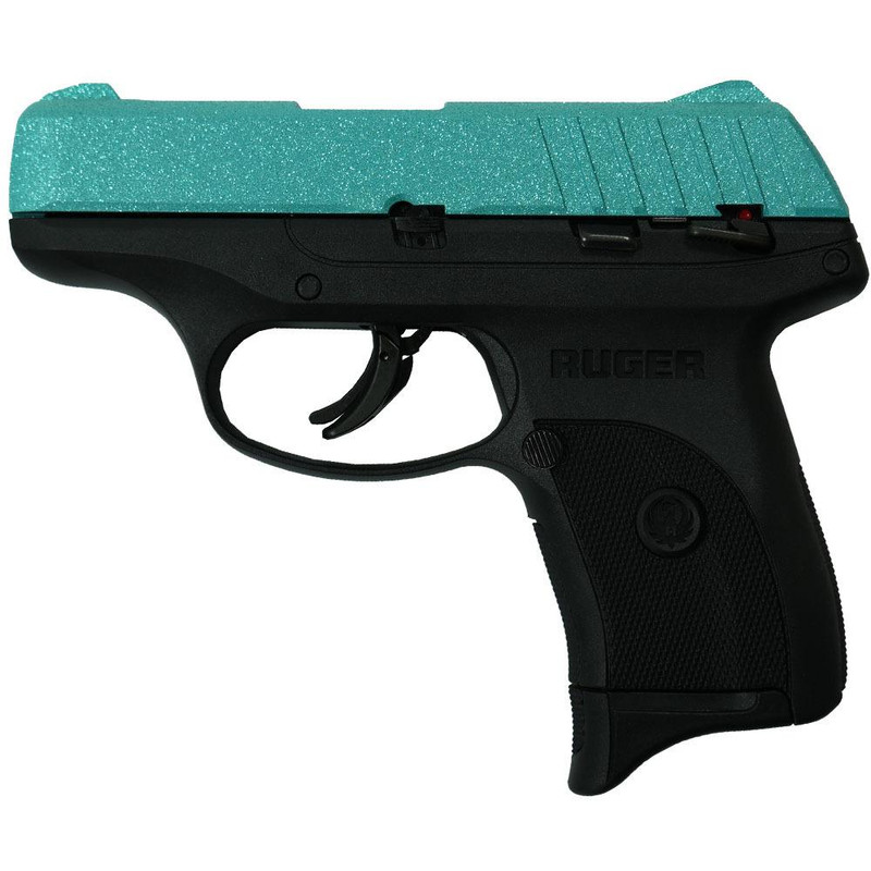 The Ruger EC9s is a striker-fired 9mm Luger semi-automatic handgun with a 3.12" barrel and 7-round magazine capacity. This slim, lightweight compact pistol features a short, crisp trigger pull, fixed sights, and a checkered grip frame for secure handling. The EC9s comes with a through-hardened slide and high-performance glass-filled nylon grip frame, finished in a distinctive robin's egg blue glitter custom finish.
