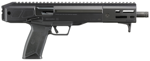Semi-automatic rifle chambered in 5.7x28mm with a 16.25" fluted, threaded barrel and 20+1 capacity. Features an adjustable side-folding stock, M-LOK handguard, adjustable Ruger Rapid Deploy sights, and weighs 5.9 lbs. Suppressor-ready with 1/2x28 thread pitch and accepts standard 5.7 pistol magazines.