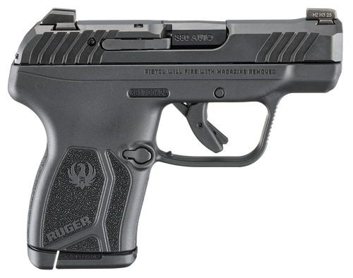 The Ruger LCP Max is a .380 ACP semi-automatic pistol with a 2.8" black nitride barrel, 10-round capacity, and double-action-only trigger. It features a factory-mounted Ruger ReadyDot micro reflex sight with a 15 MOA red aiming dot, tritium front sight with white outline, and a textured black polymer frame. This compact, lightweight pistol weighs 11 oz. and measures 5.17" overall length, making it ideal for pocket carry and personal protection.