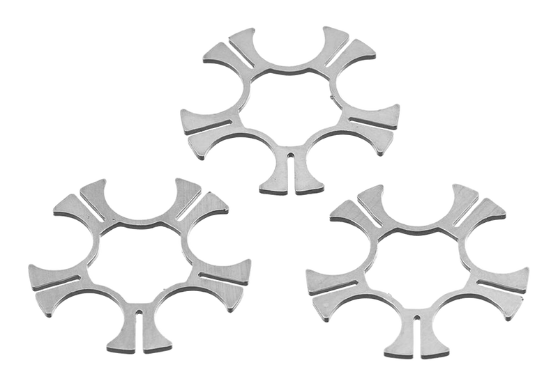 Full moon clips designed for the Ruger SP101 revolver in 9mm Luger, made from .032 thickness stainless steel. These moon clips function as speed loaders for quick reloads and ensure positive ejection across a wide range of ammunition. The optimized design allows loading and unloading without requiring a moon clip tool. Sold as a three-pack.