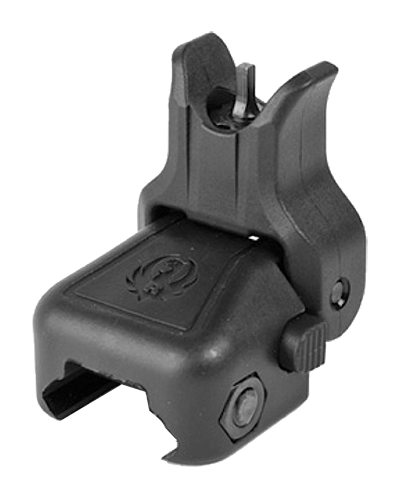 This folding front sight is elevation-adjustable and mounts to Picatinny rails on AR-platform rifles, including Ruger SR-22, SR-556, and SR-762 models. The lightweight polymer sight folds flat to accommodate optics and features spring-loaded rapid deployment via push button. It provides a backup iron sight solution for modern sporting rifles.