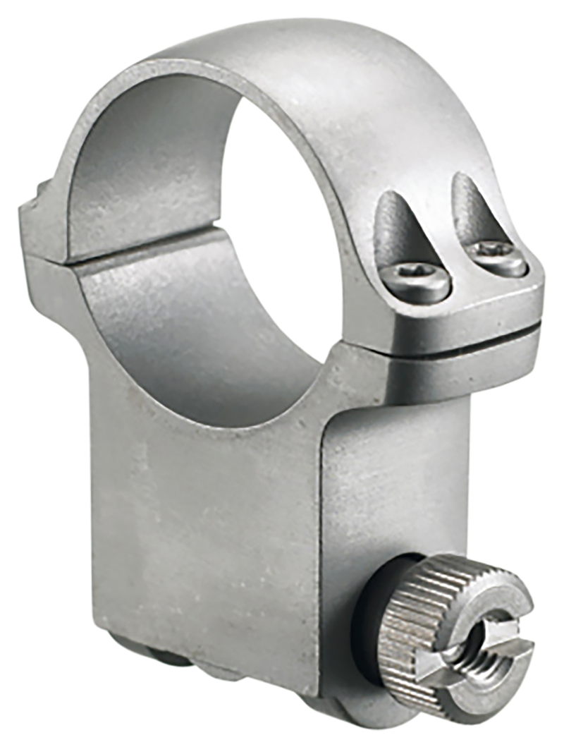 Single-piece scope ring designed to accommodate 30mm tube diameter scopes with up to 62mm objective lens diameter. Features extra-high height (1.187") and matte stainless steel finish for durability and corrosion resistance. Sold individually as part of a two-ring mounting system.