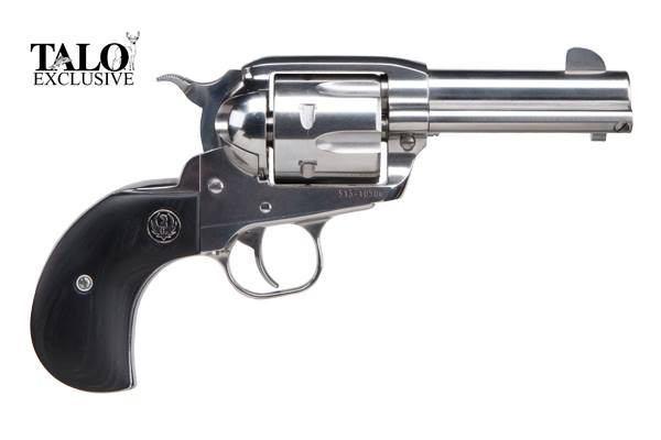 Single-action revolver chambered in 357 Magnum (also accepts 38 Special) with a 3.75" barrel and 6-round capacity. Features a high-polished stainless steel frame, fixed sights, and black laminate grips in the Birds Head configuration. Weighs 2 lbs. 5 oz. with an overall length of 9".