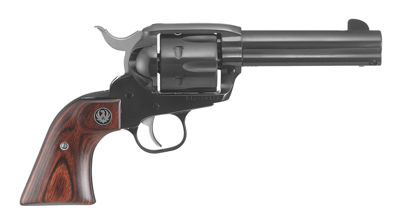 Medium-frame single-action revolver chambered in .357 Mag/.38 Special with a 4.62" blued alloy steel barrel and 6-round capacity. Features blued finish, hardwood grips, transfer bar safety, exposed hammer, and fixed blade front/integral rear sights. Weighs 43 oz with an overall length of 10.25" and is well-suited for personal protection, sport shooting, and cowboy action competition.