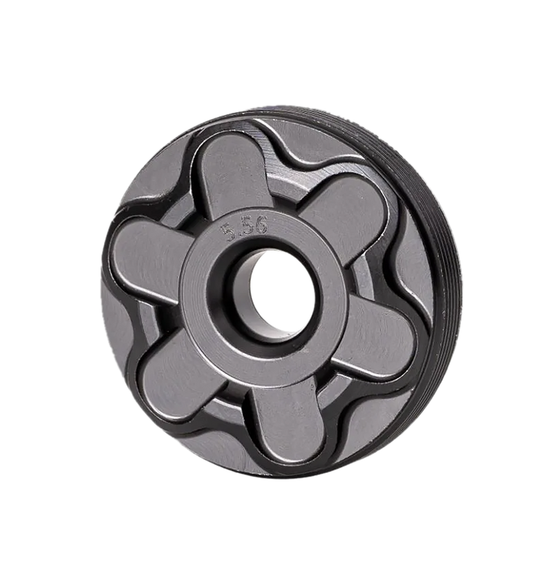 This is a front end cap designed for Rugged Suppressors suppressor models including the Alaskan360, Alaskan360Ti, Radiant762, Surge762, Razor762, and Micro30. Made from stainless steel with a black finish, the front cap provides additional sound reduction and improves suppressor tone when used with 5.56 platforms. Dimensions are approximately 2.6" long with a 1.5" width and height.