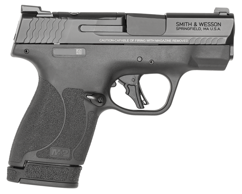 The M&P Shield Plus is a micro-compact striker-fired 9mm pistol featuring a 3.1" Black Armornite barrel and optics-cut serrated stainless steel slide with tritium night sights. It includes a thumb safety, enhanced grip texture, flat-face trigger, and ships with both 10-round and 13-round magazines for maximum versatility. Weighing 19.3 oz with a 1.1" width, it's designed for comfortable concealed carry.