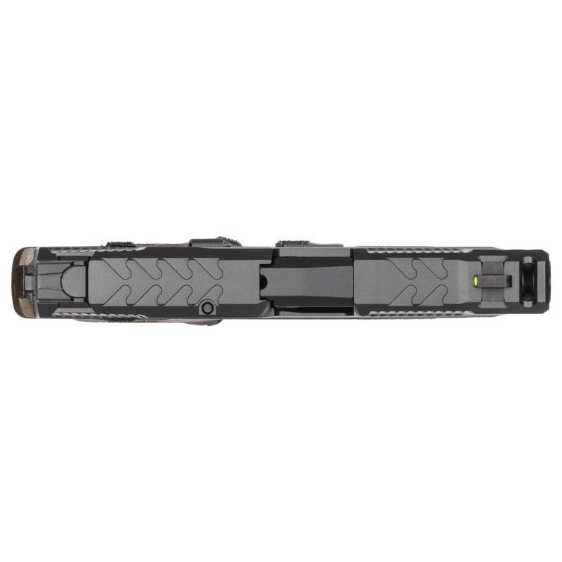 Semi-automatic micro handgun chambered in .380 Auto with a 3.1" compensated barrel and 12-round capacity. Features enhanced ergonomics, fixed Ameriglo Night Sights, and a redesigned slide with PowerPort technology for improved recoil management. Finished in Midnight Bronze Cerakote with thumb safety for concealed carry.