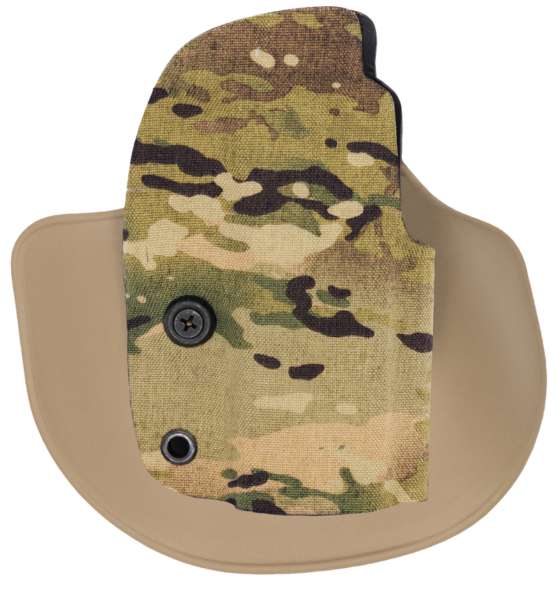 Outside waistband paddle holster designed for Sig P365 Fuse and P365 X-Macro platforms. Constructed with Cordura laminate material in Multi-Cam finish for durability and concealment. Right-hand draw configuration.