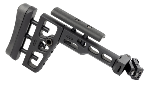 This rear trunnion stock adapter is designed for AK-platform rifles with rear trunnion tangs, enabling the installation of modern folding stocks with Picatinny rail mounting. Constructed from black anodized aluminum, it measures 4.9" in length and provides a secure interface between the rifle receiver and aftermarket stocks.