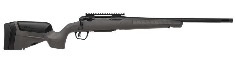 The Savage 110 Trailblazer is a bolt-action rifle chambered in 7mm Backcountry with a 16.5" heavy sporter fluted barrel and 4+1 round capacity. Features include a Black Ink Cerakoted barreled action, flat dark gray Trophy stock with adjustable length of pull, user-adjustable AccuTrigger, one-piece 0 MOA Picatinny rail, and threaded muzzle (5/8x24). Built for precision hunting with a jeweled bolt body and LimbSaver recoil pad, this rifle weighs 6.9 lbs and has an overall length of 37.61".