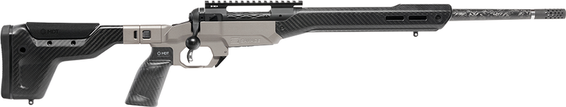 The Savage 110 Ultralite Elite is a bolt-action rifle chambered in 7mm Backcountry with an 18" Proof Research carbon fiber wrapped stainless steel barrel and threaded muzzle (5/8x24). Featuring the MDT HNT26 chassis with carbon fiber stock, integrated ARCA rail, and drilled/tapped receiver, this rifle weighs approximately 6 lbs and includes Savage's AccuTrigger. It comes with a single 3-round AICS detachable box magazine plus one round in the chamber.