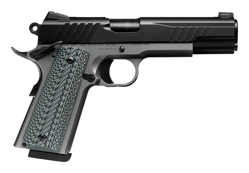 The Savage 1911 Government is a semi-automatic, single-action pistol chambered in 9mm Luger with a 5" barrel and 10+1 round capacity. Built from stainless steel with a black nitride slide, it features night sights, ambidextrous safety, dual recoil spring, machined sear and disconnector, and G10/VZ grips for reliable performance.