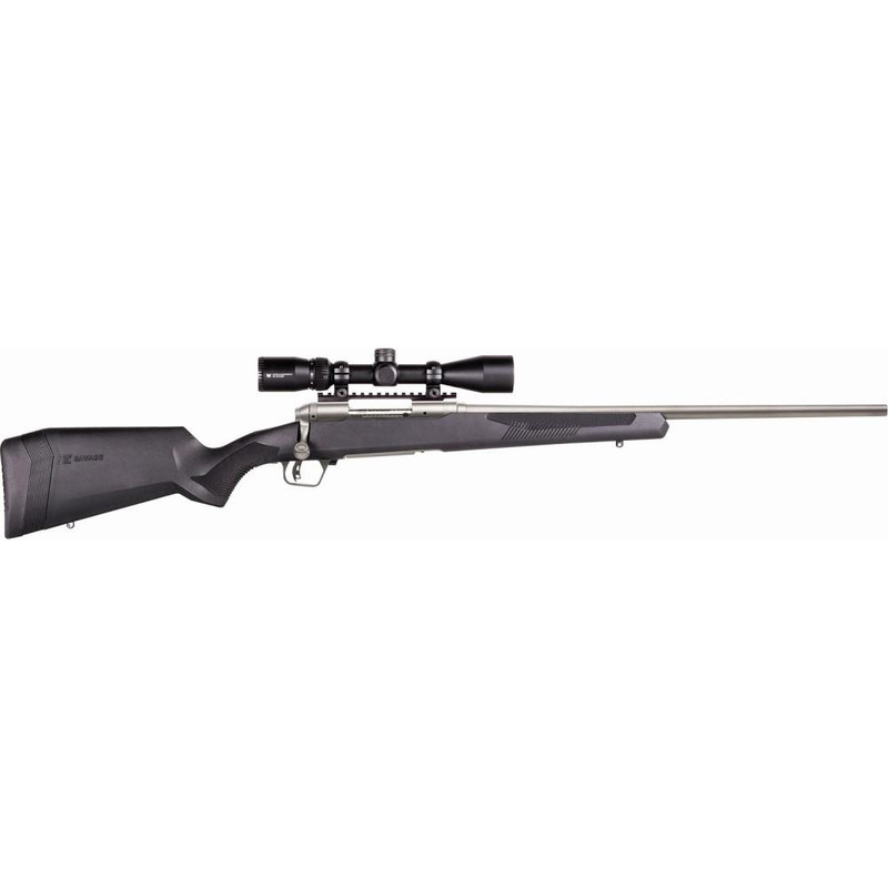 The Savage 110 Apex Storm XP is a bolt-action rifle in 6.5 PRC with a 24" stainless steel barrel and 2-round capacity. This package includes a mounted and bore-sighted 3-9x40mm Vortex Crossfire II scope, featuring Savage's AccuTrigger, floating bolt head, and adjustable length-of-pull for enhanced accuracy and shooter comfort.