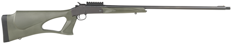 Single-shot break-action shotgun chambered in 410 gauge with 3" chamber and 26" barrel optimized for turkey hunting. Features an OD green synthetic thumbhole stock with ambidextrous cheek riser, drilled and tapped for optics, and includes an extra-full choke tube. Weighs 5.07 lbs with 41.5" overall length.