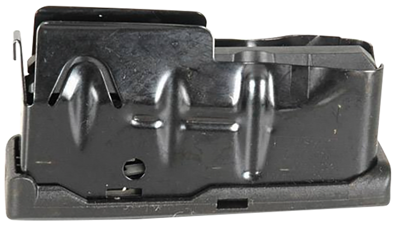 This Savage Arms detachable rifle magazine is designed for short-action Savage rifle models including the 10FC, 11FC, 12LRP, and 110 series. It accommodates multiple calibers (.243 Win, .308 Win, 6.5 Creedmoor, 7mm-08 Rem, and .260 Rem) with a 4-round capacity and features a matte blue steel construction with bottom release mechanism.