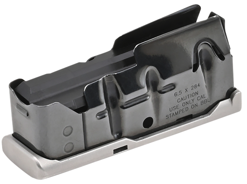 Detachable rifle magazine chambered in 6.5x284 Norma with 4-round capacity. Constructed of stainless steel with stainless finish. Compatible with Savage 110, 114, and 116C rifle models.