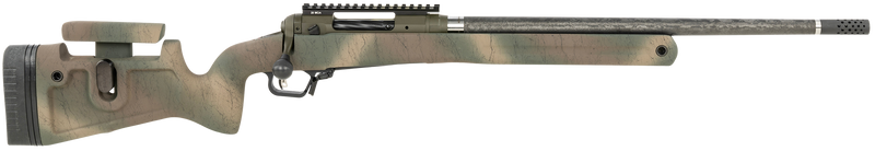 The Savage Arms 110 Pro Pursuit is a .308 Win bolt-action rifle featuring a 20" Proof Research carbon fiber threaded barrel with 1:10" twist and 3+1 capacity. It includes a Grayboe Phoenix 2 stock with adjustable comb and length of pull, spiral fluted bolt, dual ejectors, adjustable AccuTrigger, and OD Green Cerakote receiver with earth-tone camo furniture. This lightweight rifle weighs 7.2-7.4 lbs, measures 41.5" overall, and comes with a 20 MOA optic rail and suppressor-ready threaded muzzle.
