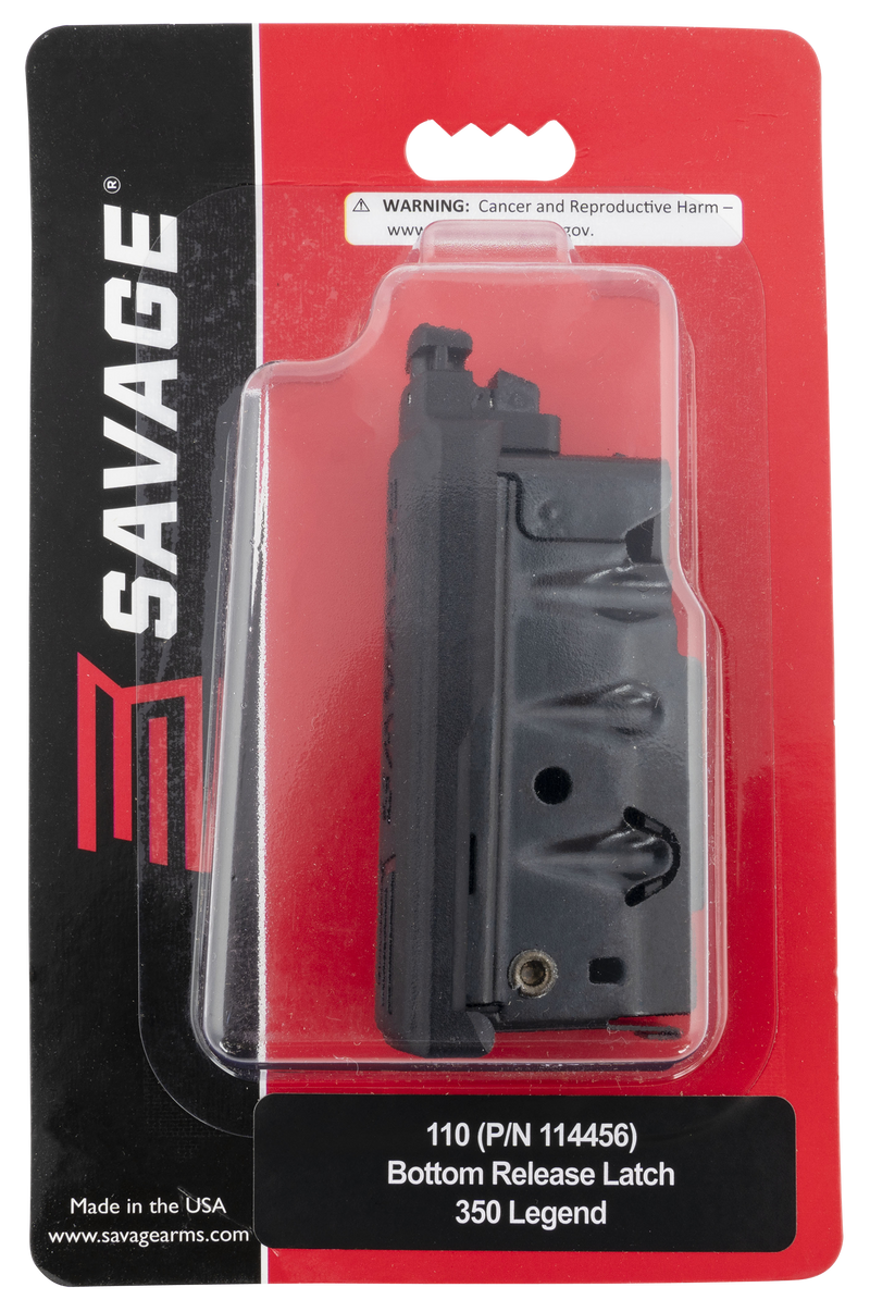 Savage Arms magazine designed for 350 Legend caliber with 4-round capacity. Features integral release and matte blued steel finish. Compatible with Savage Axis, Axis II, 110 Trail Hunter, 110 Apex Hunter XP, and 110 Hog Hunter models.