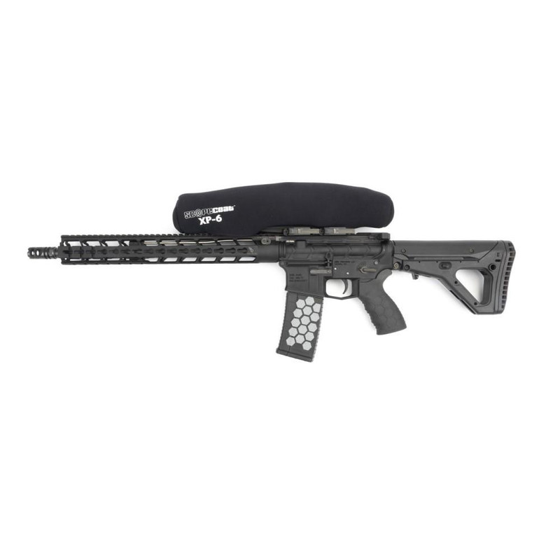 The Scopecoat XP-6 Extreme is a protective rifle scope cover made from 6mm thick neoprene material, the same material used in wetsuits, which conforms to the shape of your riflescope. It safeguards your optics from dust, dirt, dings, scratches, and moisture with a neoprene/nylon laminate composition. Sized for large scopes at 12.5" x 42mm, this cover provides maximum protection for service-weapon optics.
