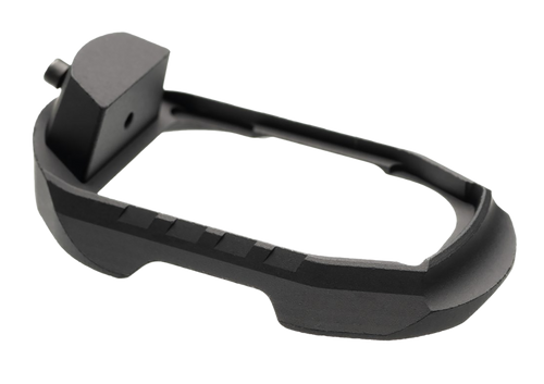 This billet magwell is compatible with SCT19 frame firearms and is constructed from black aluminum for durability and smooth magazine insertion. Dimensions are 14.5" length x 4.2" width x 2.0" height, providing a precision fit for SCT 19 platform builds.