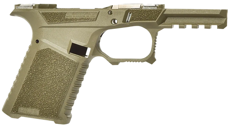 SCT Manufacturing polymer frame compatible with Gen3 Glock 19, 23, and 32 platforms. Features aggressive texture grip and includes locking block. OD Green finish with aggressive texture grip for enhanced handling.