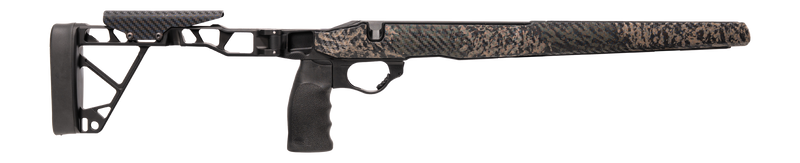 This is a precision rifle chassis designed for Tikka LA (long action) rifles, providing a modern modular platform for tactical and hunting applications. The chassis features adjustable ergonomics and is constructed to accept standard AR-15 style controls. Installation is direct-fit to compatible Tikka actions, and the chassis accepts AICS-pattern magazines.