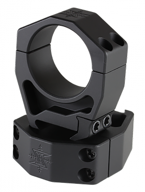 Seekins Precision scope rings designed for 30mm tubes in an extra high mount profile. Features a 1.26" height with 4 cap screws and aluminum construction with matte black finish for secure optic mounting on Picatinny rails.