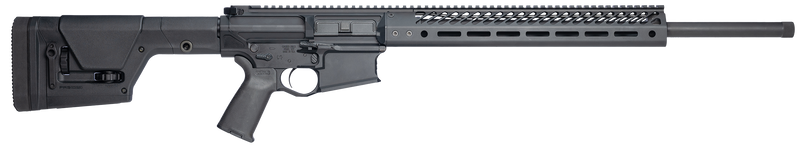 Semi-automatic rifle chambered in 6mm Creedmoor with a 22" match grade stainless barrel and 1:8" twist rate. Features a Seekins ProComp 10x tactical stock, Magpul MOE Plus grip, ambidextrous safety, Timney single-stage trigger, and Seekins ATC muzzle brake with threaded 5/8x24 barrel. Weighs 10.5 lbs with 15" SP3R M-LOK handguard and low-profile adjustable gas block.