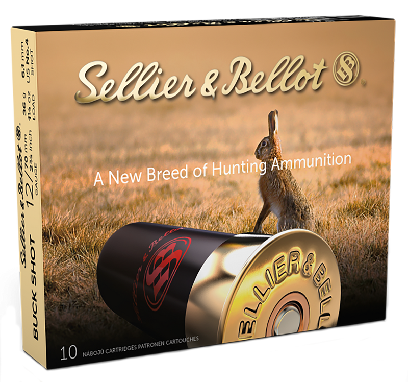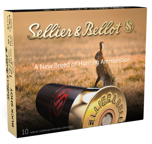 Sellier & Bellot SB12BSD shotshells are 12 gauge, 2.75" hunting rounds loaded with 1 1/4 ounces of #4 buckshot (27 pellets) designed for hunting applications. These lead buckshot loads achieve a muzzle velocity of 1181 fps and come packaged 10 rounds per box, 25 boxes per case.