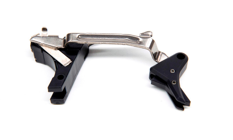 Single-stage curved trigger assembly designed for Glock Gen 1-4 pistols in 9mm, .40, and .357 calibers. Features a 4.5 lb trigger pull with intact trigger safety and drop-safe design tested from heights up to 22 feet. Constructed from aluminum and polymer materials, this drop-in trigger requires no gunsmithing and is suitable for daily carry and duty use.