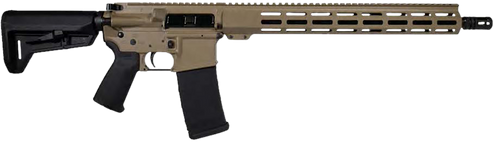 Semi-auto rifle chambered in 5.56 NATO with a 16" threaded barrel and 1:7" twist rate. Features a Magpul SL-K stock, aluminum receiver, and lever safety. Weighs 6.6 lbs with no sights installed, allowing for optic mounting flexibility.