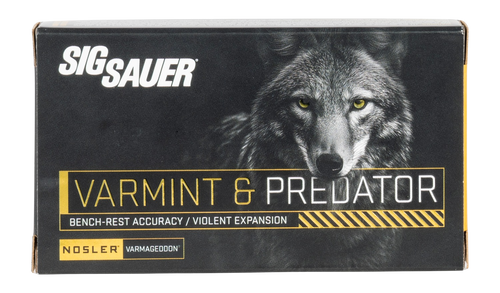Sig Sauer Varmageddon ammunition in .243 Winchester with 70-grain projectiles designed for varmint and predator hunting. This round comes in boxes of 20 rounds per package, with 10 packages per case. Engineered for reliable performance in rifle applications targeting small game and predators.